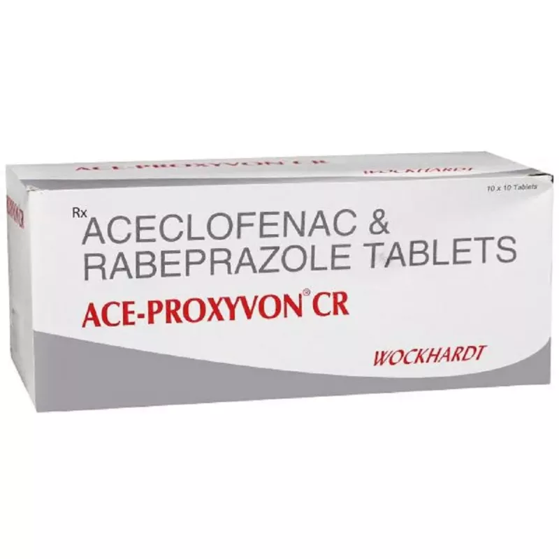 Ace-Proxyvon CR Tablet is a combination of two medicines. It is used to reduce pain and inflammation in conditions like rheumatoid arthritis, ankylosing spondylitis, and osteoarthritis. It may also be used to relieve muscle pain, back pain, toothache, or pain in the ear and throat.