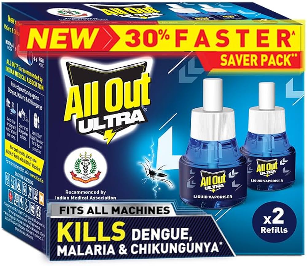 Get rid of those pesky mosquitoes with the All Out Ultra Mosquito Repellent Refill. This refill kills mosquitoes to keep you and your family safe. It is effective against mosquitoes that transmit Malaria and Chikungunya. It has an advanced formula that causes almost no effect on the human body but kills insects. So go ahead and buy this product online today!