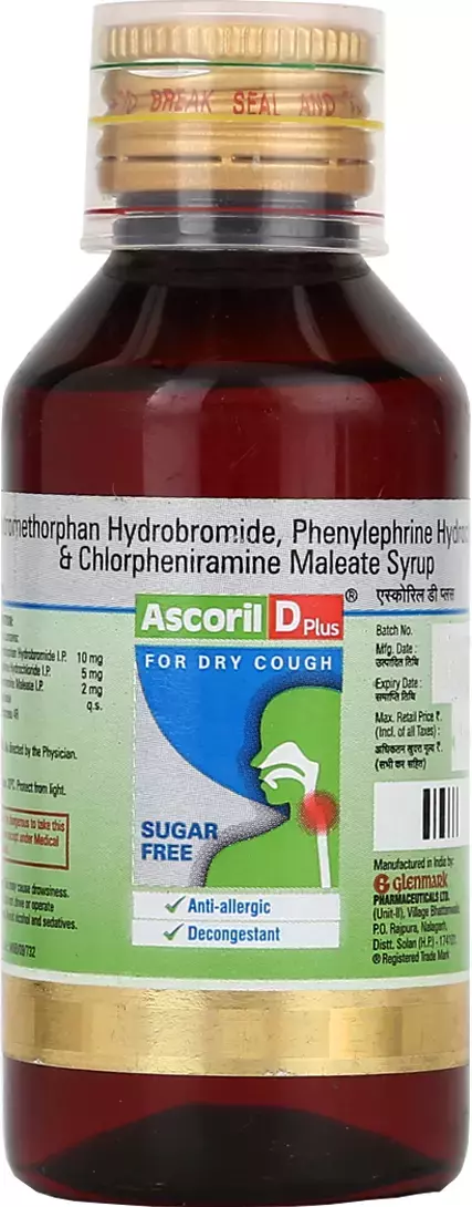 A cold and cough relief formuation that eases common cold symptoms by improving nasal congestion, runny nose, sneezing, and dry cough. This medicine helps clear blocked nasal passages, reduces allergy symptoms and suppresses persistent cough. Shake the bottle well and use the measuring cup for accurate dosing. It may cause sleepiness, dry mouth, dizziness, or mild stomach discomfort in some individuals.