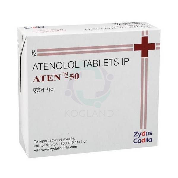 Aten 50 MG Tablet is a medicine that contains Atenolol. It is used to treat high blood pressure, angina pectoris (chest pain or discomfort caused when your heart muscle does not get enough oxygen-rich blood), arrhythmias (irregular heartbeat), thyrotoxicosis (the symptoms caused by the over secretion of the thyroid hormone). It is also used to reduce strain on the heart following a heart attack and to prevent migraines. Aten 50 MG Tablet relaxes blood vessels resulting in an improved blood flow to the heart. It also slows down the activity of your heart and reduces the rate and force of the heartbeats. As a result, the pressure at which blood is pumped and the strain on the heart is reduced. Aten 50 MG Tablet may cause dizziness, headache, breathing difficulty, and low blood pressure. If you feel dizzy or tired after taking this medicine, avoid driving vehicles or operating machines. Do not take this medicine if you are allergic to it. It can make you feel drowsy when you stand up suddenly, so it is advised that you get up slowly from a sitting or a lying position. Aten 50 MG Tablet can be taken with or without food. For the ease of remembering, take this medicine at the same time every day. Do not stop taking this medicine without consulting your doctor. Abrupt stopping the use of this medicine may lead to more serious conditions like a stroke or a heart attack. Aten 50 MG Tablet may not be suitable for all people. It may not be recommended for you if you have asthma (or any other breathing conditions), kidney or liver conditions. Consult your doctor before taking this medicine if you are pregnant, planning a pregnancy, or are breastfeeding. Make sure to eat a healthy and balanced diet. Appropriate lifestyle changes like a low-fat diet, exercise, and stop smoking to feel better besides using this medicine.