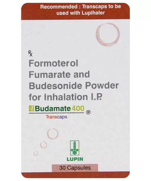 Budamate 400 transcaps is a combination of two medicines – formoterol and budesonide. This medicine is used to relieve symptoms of asthma and COPD like wheezing, shortness of breath, chest tightness, etc. Budamate 400 should be used as prescribed and not discontinued unless advised by your doctor, as a sudden stoppage can cause the disease to worsen. Headache, nausea, vomiting, cough, irritation in the throat and palpitations are a few side effects that you may experience after taking this medicine. Consult your doctor if you observe any white patches in your mouth or experience any discomfort or new symptoms on the consumption of the medicine.