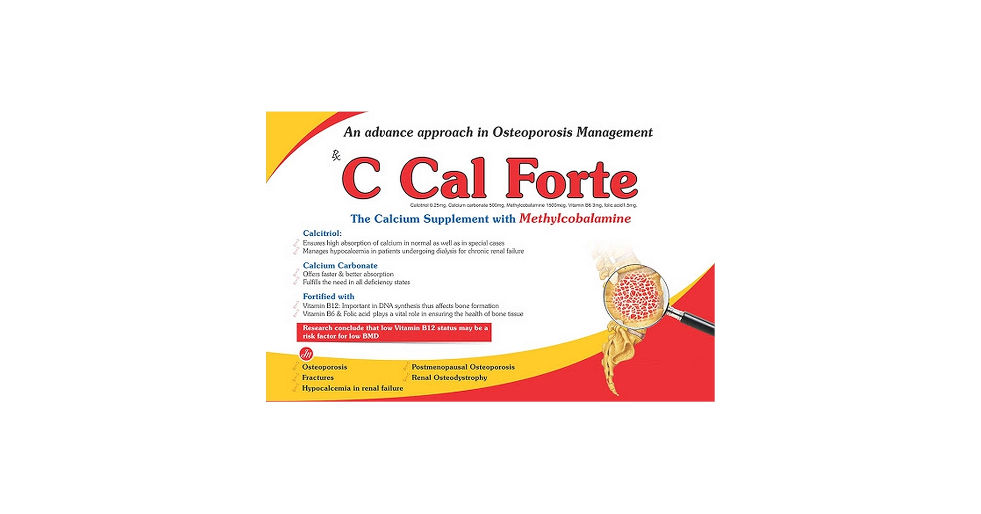 C Cal Forte Capsule is a health supplement that promotes strong and healthy bones. It is fortified with vitamin B12 and vitamin B6, which supports bone formation and bone tissue regeneration.