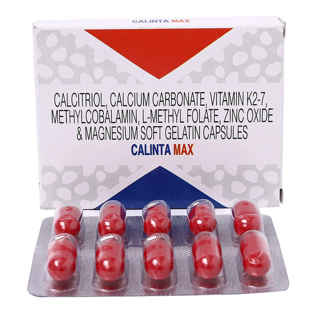 Calinta Max Capsule is a nutritional supplement that promotes good bone health and prevents the risk of fractures. It is indicated in the treatment of joint pain, inflammation, osteomalacia, rickets, and osteoarthritis. It contains Calcitriol (Vitamin D3), Calcium carbonate, Methylcobalamin (Vitamin B12), Magnesium, Zinc, L-Methyl folate, and Vitamin K2-7 (Menaquinone). It is highly beneficial in treating low calcium levels and ensures a proper supply of calcium to bones. It supports overall bone and joint health. It also improves flexibility in joints.