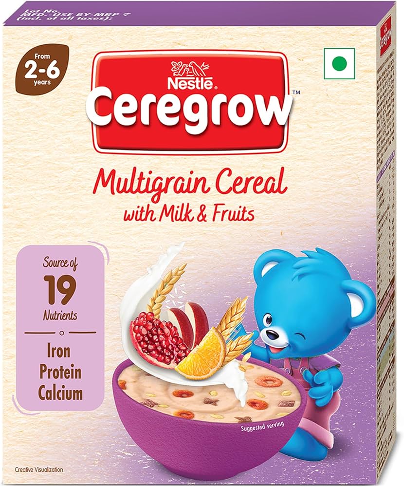 Nestlé CEREGROW Kids Cereal with no refined sugar and goodness of multigrain like wheat, rice and oats, along with milk & fruits. Assuring a bowl of dense nutrition with 19 essential nutrients like ALA (Omega 3) that helps support normal brain development, calcium & vitamin D for bone growth and protein for muscle growth.