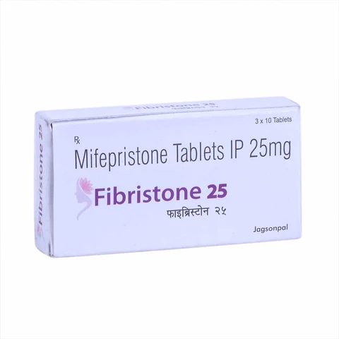 Fibristone 25 Tablet is a medicine used in the treatment of uterine fibroids, noncancerous growths in the uterus that can cause heavy bleeding, pain, and pressure. It blocks the hormone progesterone, which fibroids rely on to grow, helping shrink them and ease symptoms like heavy bleeding and pelvic pain.