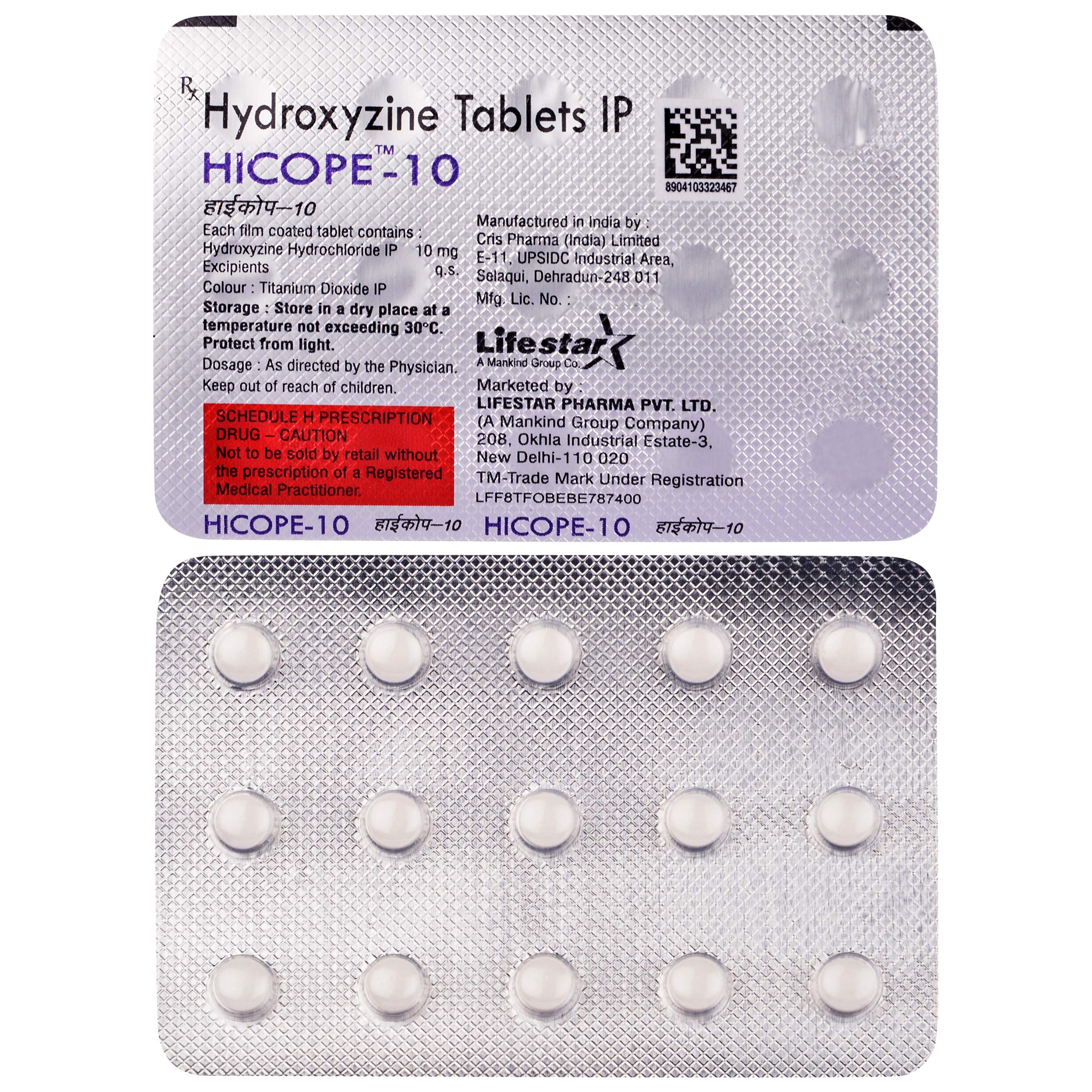 HIcope 10 Tablet is used to treat symptoms of skin allergy like itching, swelling, and rashes in conditions such as eczema, dermatitis, and psoriasis. It is also used to treat anxiety and helps to relax before or after surgery.