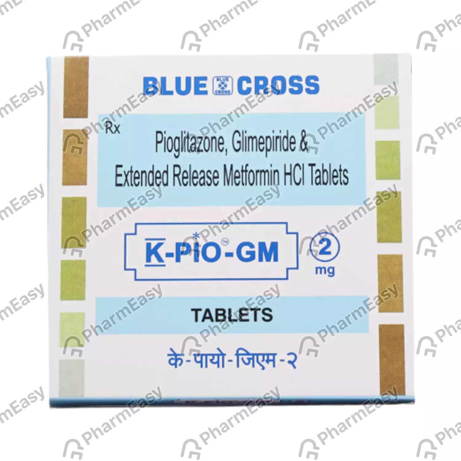 K-Pio-Gm 2mg Tablet ER is a combination medicine that helps control blood sugar levels. This medicine is used together with diet and exercise to improve blood sugar control in adults with type 2 diabetes mellitus. It helps in proper utilisation of insulin, thereby lowering the blood sugar levels.