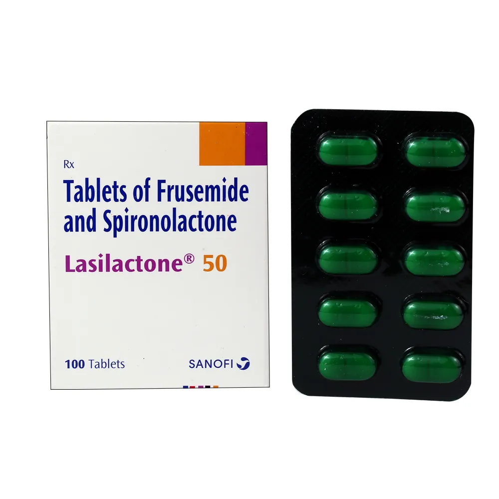 Lasilactone 50 Tablet is used to treat resistant hypertension, chronic cardiac failure, and hepatic cirrhosis. It is commonly used when fluid buildup (edema) or high blood pressure cannot be controlled by a single medicine. It helps remove excess salt and water from the body, reducing swelling and fluid overload.