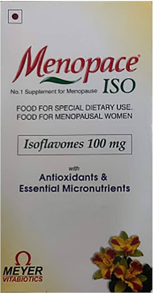 Menopace ISO Tablet is a nutraceutical product that is beneficial for women during and after menopause. It is composed of soy isoflavones, vitamins, minerals, and antioxidants that help regulate hormonal balance. It is a scientifically developed micronutrient formula that contains 17 nutrients. It can be used with or without Hormone Replacement Therapy (HRT). This supplement consists of Soy isoflavones, Vitamin A, Nicotinamide, Pyridoxine (Vitamin B6), Vitamin C, Vitamin E, Vitamin D3, Vitamin B12, Iron, Folic acid, Zinc, Magnesium, Biotin, and minerals.