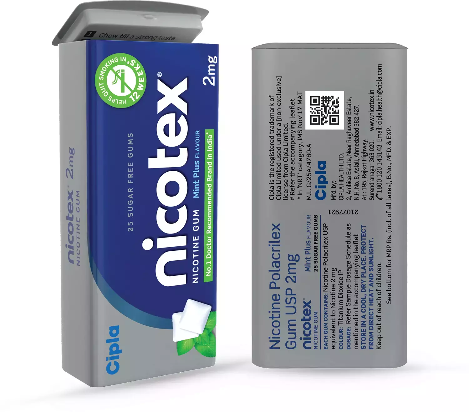 Nicotex 2mg Sugar-Free Mint Plus gum is a nicotine replacement therapy (NRT) used to help smokers quit by slowly reducing nicotine dependence, managing cravings, and easing withdrawal symptoms like irritability and anxiety, delivering controlled nicotine without tobacco’s harmful chemicals. The 2mg strength is for lighter smokers (under 20 cigarettes/day), and it’s used over a 12-week program by chewing slowly, resting it, and repeating as taste fades, aiming for a smoke-free life.