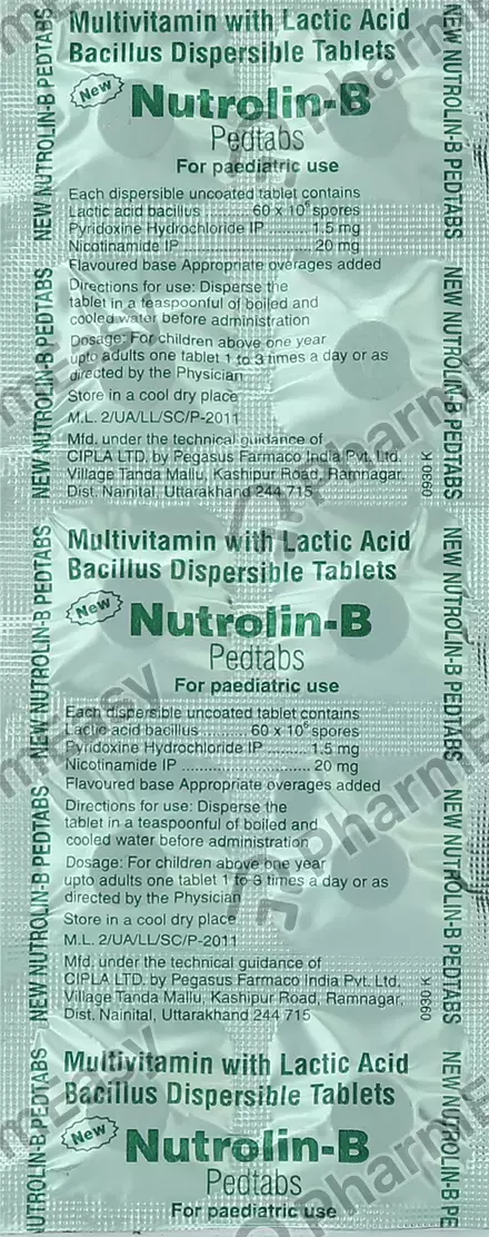 Nutrolin-B Paediatric tablet is a probiotic and multivitamin supplement used in children to manage diarrhoea caused by antibiotic use or other digestive disturbances. It helps restore the natural balance of good bacteria in the gut, which is often disrupted during illness or after taking antibiotics. This helps improve digestion, reduce gas buildup, and support better nutrient absorption in children.