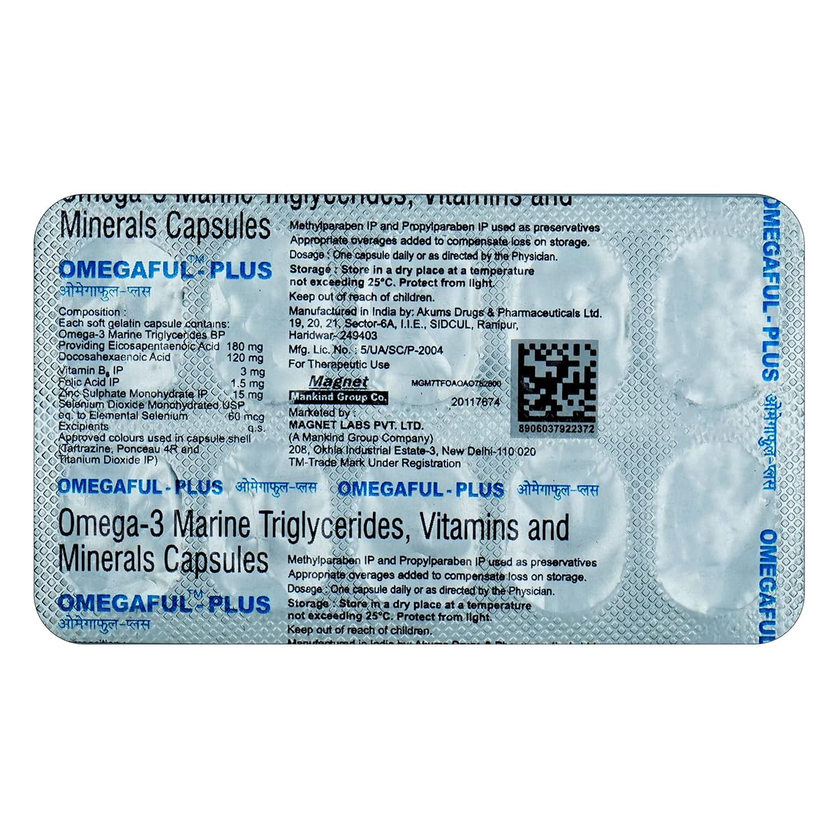 Omegaful Plus is a combination of Omega-3 fatty acids, vitamins, and minerals. According to search results, the key ingredients per capsule include: