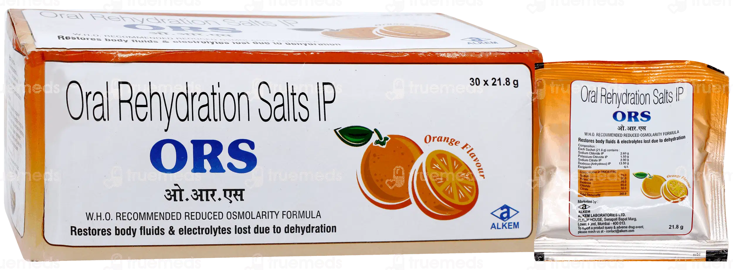 ORS (Oral Rehydration Salts) powder, 21.8g (commonly produced by brands like Prolyte, Electral, or Dr. Morepen), is a WHO-recommended formula designed to replenish water and essential electrolytes lost due to dehydration, diarrhea, vomiting, and excessive sweating. It works by restoring the body’s fluid and salt balance, making it critical for recovering from dehydration.
